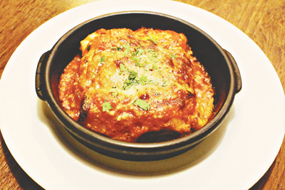 ②イタリアンバル2538(にこみや)(千住3-36 マツマルビル2階、TEL3870・1147)、イタリアンバル2538自家製ラザニア、10種のパスタや牛ホホ肉の赤ワイン煮込みなど気軽に楽しめるイタリアン。提供される料理やワインは居酒屋価格なのが良い。