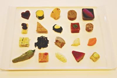 ③タピルージュ(千住1-4-1 東京芸術センター20階、TEL5284・1590)、20種類の季節野菜のスペシャリテ、フレンチ弁当がおすすめ。ライスボール、スモークサーモンはリピートしちゃうほどおいしい。テイクアウト限定のフォアグラバーガーは絶品!