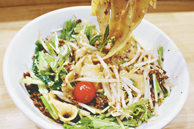 ④担々麺 琉帆(RuPan)(栗原1-18-8 第一宝ビル102、TEL5856・5368)、ビヤンビャン麺、テイクアウトで汁なし坦々麺やびゃんびゃん麺などが食べられる。モチモチした麺、辛さとしびれ、テイクアウトしてもお店の味と変わらずとてもおいしい。