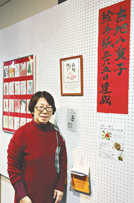 中央本町1丁目在住の絵手紙作家・古地八重子さん(72)が、日本絵手紙協会の呼びかけに応えて行った絵手紙を1年間毎日1枚は書くという「365日達成」を行い、昨年12月2日(水)~12日(土)に、梅田7丁目にあるエルソフィア1階の梅田ギャラリーで記念展を開いた。