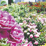 新田学園と隅田川に挟まれる位置にある大きな公園「新田さくら公園」(新田3-34-1)には、5月中旬になると約1700株のバラが咲き誇る。
