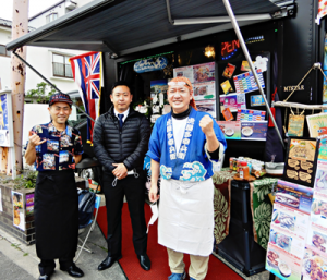 最初の善意の主は、磯川運送㈱=梅島2丁目=の元木達也さん(36)。このコロナ禍により壊滅的な飲食業界を手助けしようと、会社で借りている島根4丁目の約330㎡(約100坪)ある元ガソリンスタンドの土地を、この3月から各種キッチンカーに開放。曜日、時間は関係なく、使用料は2000円(税込、電気代込)。この場所は、ちょうど旧日光街道と環七北通りが交差する地点。隣にデイリーヤマザキ、近くにスーパー西友があって、人通りは多いものの、町としての盛り上がりは今一つ。
