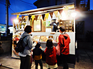 千葉・松戸の唐揚屋、オムライス店、千葉の団子屋、六木のホットサンド店、葛飾・金町のおにぎり屋、北綾瀬のたこ焼き屋、文京区のハワイ料理店と8店が登録、3月中は延べ30台が出店。