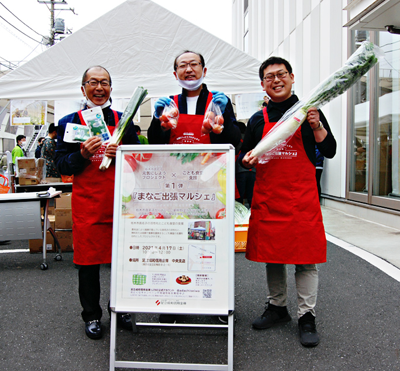 4月17日(土)は、中央支店(梅田8-2-16)で栃木市真名子の活性化とこども食堂支援を目的とした「まなご出張マルシェ」が行われた。