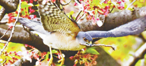 ツミが姿を見せるのは、例年だとお彼岸の頃。冬は南に旅をする鳥だが、今年はソメイヨシノが開花すると同時に元気よく木から木へ。そして満開の頃にはペアリング行動も見られるようになった。昨年より一週間早い4月19日(月)には、昨年と同じ場所の桜の木に営巣した。カメラマンの一人、綾瀬6丁目在住の小久保彰さん(72)は「この季節が鳥撮りには絶好のシャッターチャンス。オス、メス仲良く営巣が始まり、5月中旬から下旬にはヒナが生まれるでしょう。1カ月後には巣離れが始まり、巣の近くを飛び廻る様に。独り立ちするまでの成長を、マナーとルールにのっとり、静かに温かく見守りたいと思
