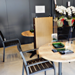 テーブルとイスが置かれた「ふれ愛スペース」は憩いの場として住民に利用してもらっている。