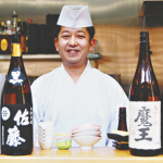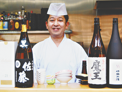 舎人公園北側の住宅街にまるで高級寿司店のような店構えの和食料理店「善」(古千谷本町1-14-35、TEL4296・6727)がある。古千谷小、伊興中出身の足立区生まれ足立区育ちの馬場善彦店主(39)が3年前にオープンしたお店だ。店内に入ると、高い天井と木の温もりを感じる明るい作りにゆっくりと食事を楽しめる空間が広がっている。お酒は何と約100種類と充実。人気のレモンサワー(590円~)や芋焼酎「魔王」(900円)、山形の日本酒「十四代(極上諸白)」(2380円)など各種取り揃えている。