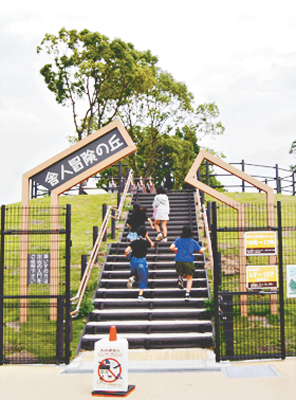 6月1日(火)、都立舎人公園の東南部に6歳~12歳を対象にした遊具エリア「冒険の丘」が完成。6つの遊具が姿を現した。子どもたちは入口の冒険の丘ゲートをドキドキワクワクしながら登り、その名の通り遊びという名の冒険へ向かっていく。