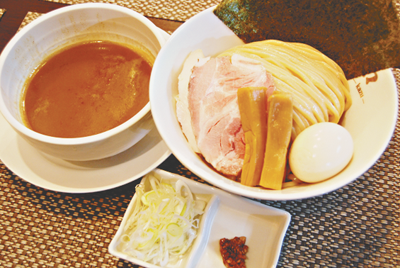 雑誌「TRYラーメン大賞-東京ラーメン・オブ・ザ・イヤー」で2018年に新人賞を受賞すると、その後も同紙の「つけ麺・濃厚部門」でほぼ毎年のように受賞する人気店「つけ麺 和-kazu-東京本店」(西竹の塚1-12-9、TEL5856・9377)。昼時にもなると行列が出来る人気店で、この味を求めて遠方からも電車や車で食べに来る人もいる。