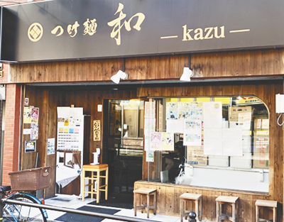雑誌「TRYラーメン大賞-東京ラーメン・オブ・ザ・イヤー」で2018年に新人賞を受賞すると、その後も同紙の「つけ麺・濃厚部門」でほぼ毎年のように受賞する人気店「つけ麺 和-kazu-東京本店」(西竹の塚1-12-9、TEL5856・9377)。昼時にもなると行列が出来る人気店で、この味を求めて遠方からも電車や車で食べに来る人もいる。同店は、葛飾区亀有にある名店「つけ麺 道」で修行を積んだ金井和繁店主がオープン。2年後には、仙台に2店舗支店を開いた。