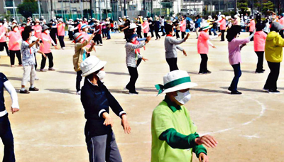 晴天に恵まれた10月6日(水)、足立区友愛クラブ連合会(村上光夫会長)が、今年で45回目を迎えた大運動会を平野運動場で行った。