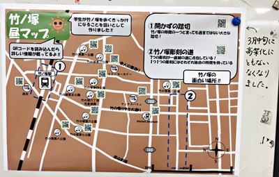 さらに、大学横を流れる毛長川を渡るとすぐに草加市であることから、草加も調査した。街歩きを通して見付けた谷塚駅前にあるおすすめのお店を学生たちに知ってもらうため、お店と連携をとって大学内で商店会フェアを実施したことを報告。これによって、「知ってるけど入りづらかった」という学生とお店との橋渡しが出来たと伝えた。同大学の海津ゆりえ教授は「コロナ禍により、あれもこれも中止で地域との交流が中々出来なかったが、ようやく実施できた。ここからまた新しく大学と地域との1ページが始まるようになっていってほしい」と話した。