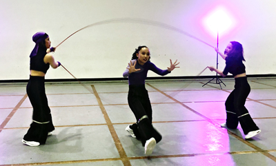 チームは、鶴川智裕さん(国府台女子学院中等部2年)、帆足春菜さん(千寿青葉中3年)、石田瑞希さん(千寿桜堤中3年)の幼馴染3人組。コーチは、東京2020パラリンピックのハーフタイムショーに出演経験がある安藤麻由さん(33)。安藤さんは、2014年頃にアルバイトをしていた区内の学童保育室でダブルダッチを教えていて、そこに3人が通っていた。ダブルダッチは、2本の縄を使って跳ぶ縄跳びで、3人以上で行う。音楽に合わせて、ターナー(回し手)とジャンパーが入れ替わりながら色々な技を交えて跳ぶ。縄を回す技術や表現力などが審査される。