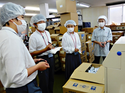 3人が取材したのは、保木間2丁目にある生物園、小台1丁目にある企業「㈱田島ルーフィング」、扇2丁目にある和菓子の製造メーカー「㈱大江戸」の3カ所。3人は、各訪問先で活発に質問したり、写真を撮ったりして熱心に取材した。