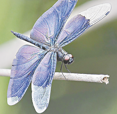 すると、偶然チョウのようにひらひらと飛ぶのでこの和名がついたチョウトンボが現れ、撮りやすい位置に止まったのでシャッターを切ったのがこの写真。光の当たり具合で翅がグラデーションに包まれとても綺麗だ。