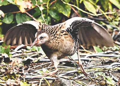 西綾瀬在住の女性カメラマン松井美子さんが、綾瀬6丁目のカルガモの池付近で区内では珍しいクイナの撮影に成功、写真とともに喜びの声を送って来た。