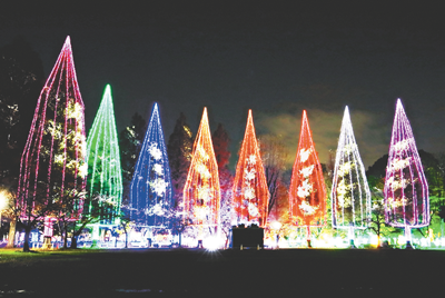 写真上/元渕江公園の8本のメインツリー=令和元年度足立区街フォトコンテスト投稿作品 中村さん「イルミネーション」