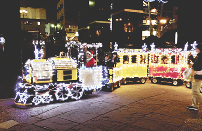 新型コロナウイルス感染防止のため、点灯式やステージショー、物産展などは行われず、100%元通りという訳ではないが、待ちに待った冬の風物詩が戻ってきた。新しいイルミネーションは3種類。1つ目は竹ノ塚駅前の「スノーフォール」。その名の通り光が降ってくるようなイメージのイルミネーションだ。2つ目は元渕江公園の「バルーンエリア」。触ると様々な色に変わる不思議なバルーンで遊べる。3つ目は同公園を走る「キラキラ★トレイン」。開催期間中の土日(雨天中止)に12分おきに走る光る機関車(16人乗り)に乗って公園を探検できる。利用には乗車券が必要(同公園で抽選券配布)で、午後5時~6時台は小学生以下の子どもを含むグループ