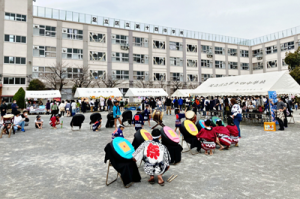 桜が開花したばかりの3月21日(火・祝)、西竹の塚1-8-1にある第十四中学校(塚原洋校長、生徒数739人)の校庭で、生徒と父母が一緒になって楽しむ「第17回桜樟祭」が開かれ、久々に元気な声が響いた。