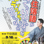 「江戸落語、上方落語があるなら千住落語があってもいいじゃないか。」というキャッチフレーズで「千住」を舞台にした落語に挑戦している「千住落語」の第3回が、来る9月16日(土)午後2時半開演(2時開場)、同4時終演予定で開催される。