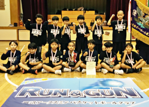◆男子優勝、皿沼アークスA・森山甲介監督の話/体格では部が悪い中、ハードなディフェンスからアーリーオフェンスを主体に走るバスケで得点を重ね、目標の優勝ができてよかった。