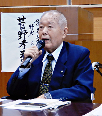 写真/昨年11月に開かれた「第148回足立俳句大会」で挨拶する小谷氏