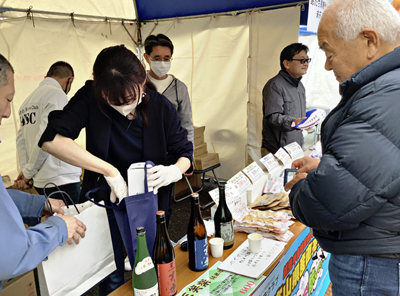 この義援金は、3月23日(土)、24日(日)に舎人公園で開催された「千本桜まつり」で富山県産の名産品「ブラックラーメン」や「ほたるいかいしる干」、「甘えびあられ」、「純米吟醸 満寿泉」などを販売して集まったもの。