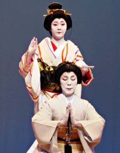最後に容市樹さんと佳南女さんが、長唄「時雨西行」で母娘共演。西行と江口の君の情趣、西行の心に写る菩薩と遊女の踊り分けが見事な舞台となった。