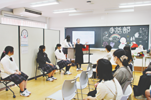 同校の文化祭は年2回あり、6月はクラブ部門。文科系クラブを中心とした28団体が展示・発表し、文化委員・生徒会本部役員が運営した。この日でクラブを引退する多くの3年生にとって、最高の花道となった。各教室では、お化け屋敷や縁日、手作り体験など趣向を凝らした展示や発表があり、来場者を歓迎する生徒たちの笑顔が弾けた。書道部の展示では、モニターで自分の書いた漢文の解説や、墨で固まった筆のほぐし方など役立つ情報も紹介。