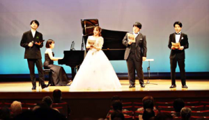 「ロマン派オペラ」3曲、「日本の郷愁」3曲に続いて、みんなで歌おうのコーナーでは「上を向いて歩こう」や「ふるさと」など4曲を客席も一体となって合唱。締めくくりの「ベルカントの世界」では、歌劇「セヴィリアの理髪師」「椿姫」の曲を圧巻の声量と表現力で歌い上げ、聴衆を魅了した。