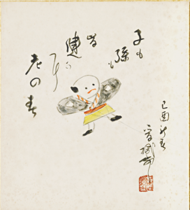 画題=奴凧「子も孫も皆健かに老の春 己酉新春」晋機柳(1969年)