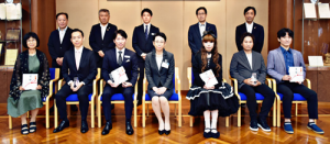 写真上/創業プランコンテストの採択者と関係者ら=足立区役所で