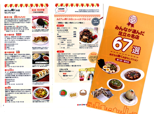 【メモ】「あだち輝くお店セレクション」の前回まで(手みやげ、町の中華、洋食、テイクアウト、パン、ラーメン、スイーツ、辛いメニュー)の選出店をまとめた冊子が完成(写真上)。過去3回以上選出されて殿堂入りした店舗の紹介、選出店に聞いたおうちレシピも掲載。配布場所は、区役所、区民事務所、図書館、ギャラクシティ、輝くお店セレクション選出店ほか。