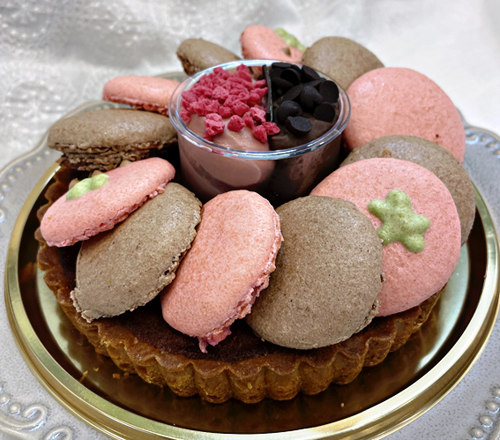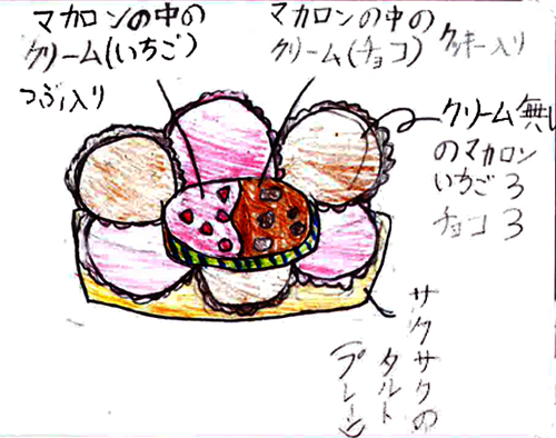 写真中・下/パティスリーアンプリルが作った子どもが考えた夢のお菓子「ディップマカロンタルト」