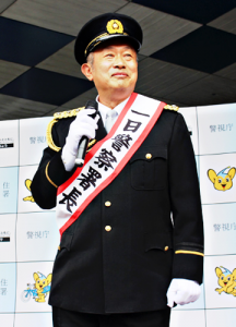 俳優の内藤剛志さんが秋の全国交通安全運動の一環として、9月21日、千住警察署の一日警察署長に就任し、千住の街で交通安全を呼びかけた。