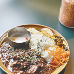 ランチは、鰹と昆布、八丁味噌を使った「和出汁と味噌のチキンカレー」(1050円)ほか、カレーが3種。他のカレーとの合いがけも可能。夜はインドの炊き込みご飯「ビリヤニ」や一品料理をつまみにお酒を楽しめる。各種料理は子どもでも食べられる辛さで、テーブルにあるオリジナルスパイスで自分好みの辛さに調整できる。