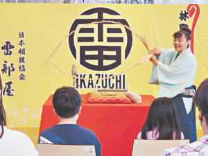 最後になな子が来場者の健康と多幸を願い「南京玉すだれ」を披露し、楽しい講座は幕を閉じた。