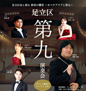 最高齢は96歳の櫻井弥生さん(区内在住)で、娘の美和さん(60代)とともに。弥生さんは若い頃に全国のコンクールの出場実績があり、現在も地元のコーラスに参加している。母娘別々に第九歌唱の経験はあるが「2人で一緒に歌いたいね」と申し込んだ。弥生さんは「とても楽しい」、美和さんは「念願が叶った」と喜ぶ。合唱好きで越谷在住の高橋詩佳さん(中2)は、貴重な機会を楽しんでいる。本番当日はオーケストラ約70名との大規模な演奏になる予定という。石本代表の東京藝大での恩師、萩原潤さん(バス)も出演。本格的なクラシック音楽をリーズナブルに聴けるまたとない機会、ぜひ足を運んでみては。