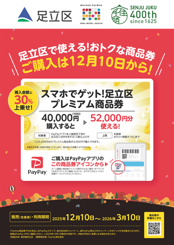 12月10日からPayPayアプリを利用するデジタル商品券「足立区プレミアム商品券(PayPay商品券)」の販売が始まった。