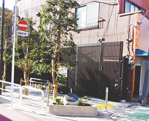 赤い実をたくさんつける樹木で、耐陰性と対汚染性があり、商店街に夏場の猛暑で買い物に来た人たちのちょっとした暑さを避ける場所にもなりそうだ。どちらも広さは、約53㎡。腰掛バーがあり、寄りかかってひと休み出来るミニスペース。