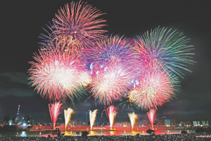 足立の花火は、1時間に1万3000発を打ち上げる高密度花火が特徴で、時間は午後7時20分~8時20分(荒天中止)。今年こそは、都内で一番早い大規模花火が夜空に打ち上がることを期待している。