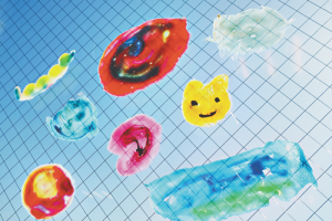 ジェルフラワーは、接着しない素材(クリアファイルなど)の上に拡げたボンドに、アクリル絵の具を混ぜて思い思いの色と形を作り、1週間ほど乾かすとシールのようにガラス面などに貼り付けられるもの。講師のスズキミさんが「花畑」も「あかしあ」も「花」であることから命名した。1月16日にふぉらんでワークショップを開催し、園の利用者16人と「あだち若者サポートステーション」のメンバー3人が製作。26日の作品お披露目会は、若者支援団体の利用者たちが製作会で作ったものも加えてガラスに貼り、華やいだカフェの中で開かれた。