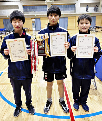 12月27日、調布市立第五中学校で行われた「東京都中学校新人卓球大会」の男子シングルスで、木村建吾さん(中1)が優勝、大川隼さん(中1)が3位、手島結音さん(中2)が5位に入賞した。
