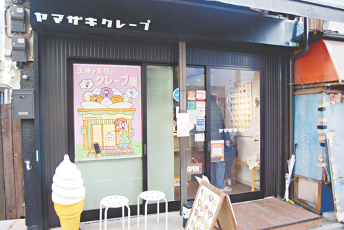 同店は、千葉県にある「ヤマグチクレープ」のフランチャイズ店で、元看護士の山崎店主が下町情緒あふれる商店街が気に入り、今の場所にお店を開いた。