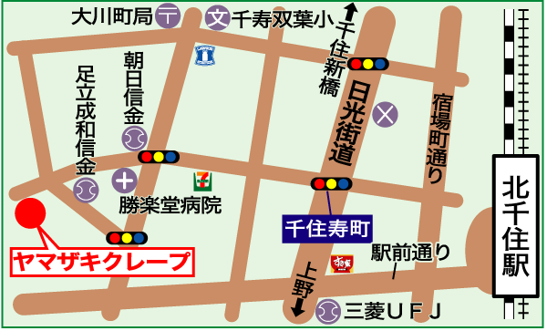 同店は、千葉県にある「ヤマグチクレープ」のフランチャイズ店で、元看護士の山崎店主が下町情緒あふれる商店街が気に入り、今の場所にお店を開いた。同店のクレープ生地は、国産の農薬不使用の小麦粉、全粒粉、てんさい糖、ギー(バターから不純物を取り除いた純粋なオイル)などを使用。腸内環境を整え、身体やお肌にうれしい材料で、生地だけならワンちゃんも安心して食べることが出来る。