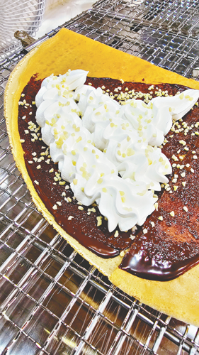 クレープのトッピングに使うチョコは、チョコレートシロップではなく、製菓用のチョコペレットを溶かして使用している「ホントノチョコ」で、濃厚な味わいだ。