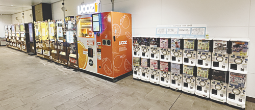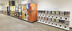 中/竹ノ塚駅改札内の1階、階段わきのスペースに設置されたカプセルトイのマシーン