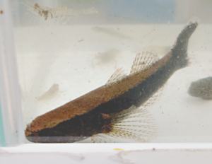 写真上/学生が採取したカワアナゴ