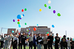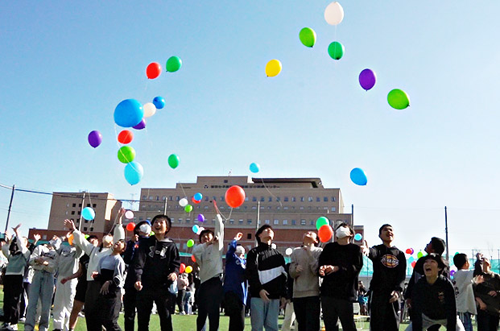 子どもたちは、空高く上がったバルーンを見上げながら、学校で過ごした様々な思い出を振り返っているようだった。