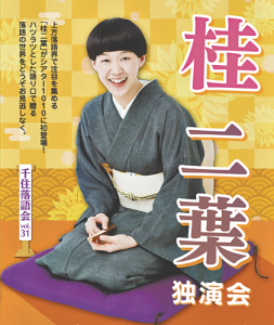 新進気鋭・大阪生まれの落語家・桂二葉がこの夏、シアター1010に初登場する。トレードマークであるマッシュルームカットの愛らしい姿が印象的。ホールの隅まで届くパワフルなハイトーンボイスから繰り出される噺はテンポ良く、一度聴いたら「二葉ワールド」にはまること間違いなし。とにかく上手いのだ。